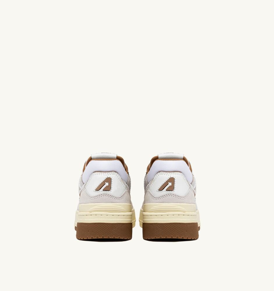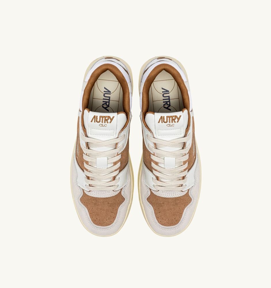 La chaussure de sport CLC est conçue pour s’imposer dans le style Autry grâce à ses contours apparents et ses bandes de roulement gaufrées. Elle est une réinterprétation extra-volume de la Medalist classique, caractérisée par le renfort de cheville classique de la basket, englobé et protégé par le col en maille.