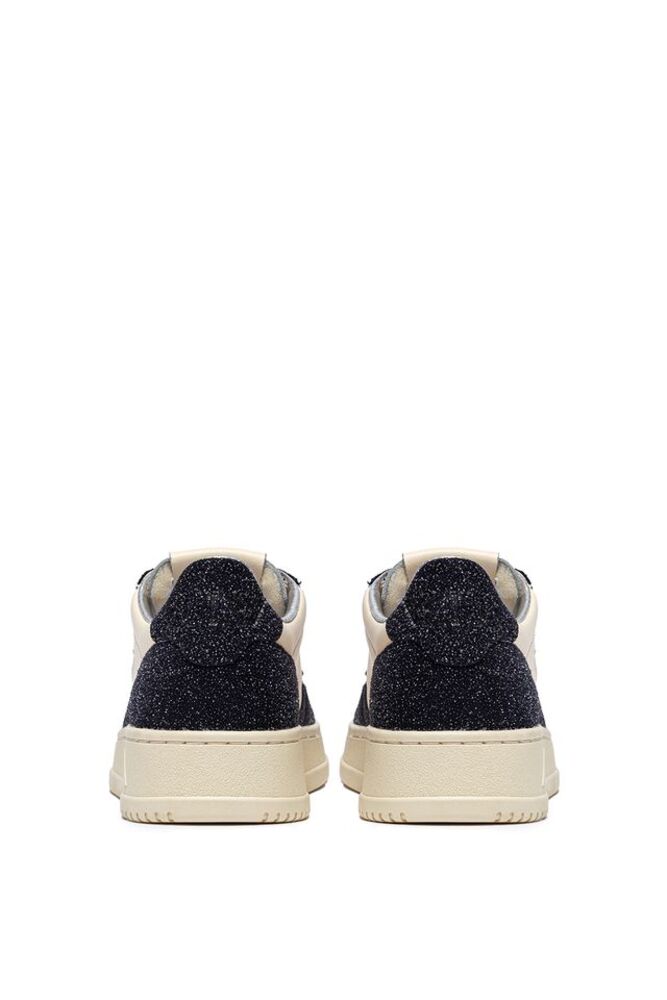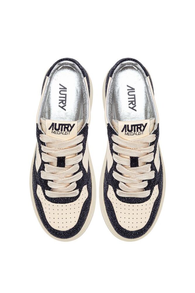 AUTRY – Basket Medalist Bicolor cuir et paillettes Ecru/blue