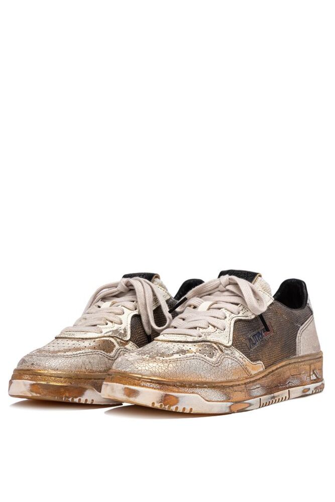 HomeShopCréateursAUTRYAUTRY – Basket Medalist Super Vintage en cuir et Mesh Gris Blanc et or