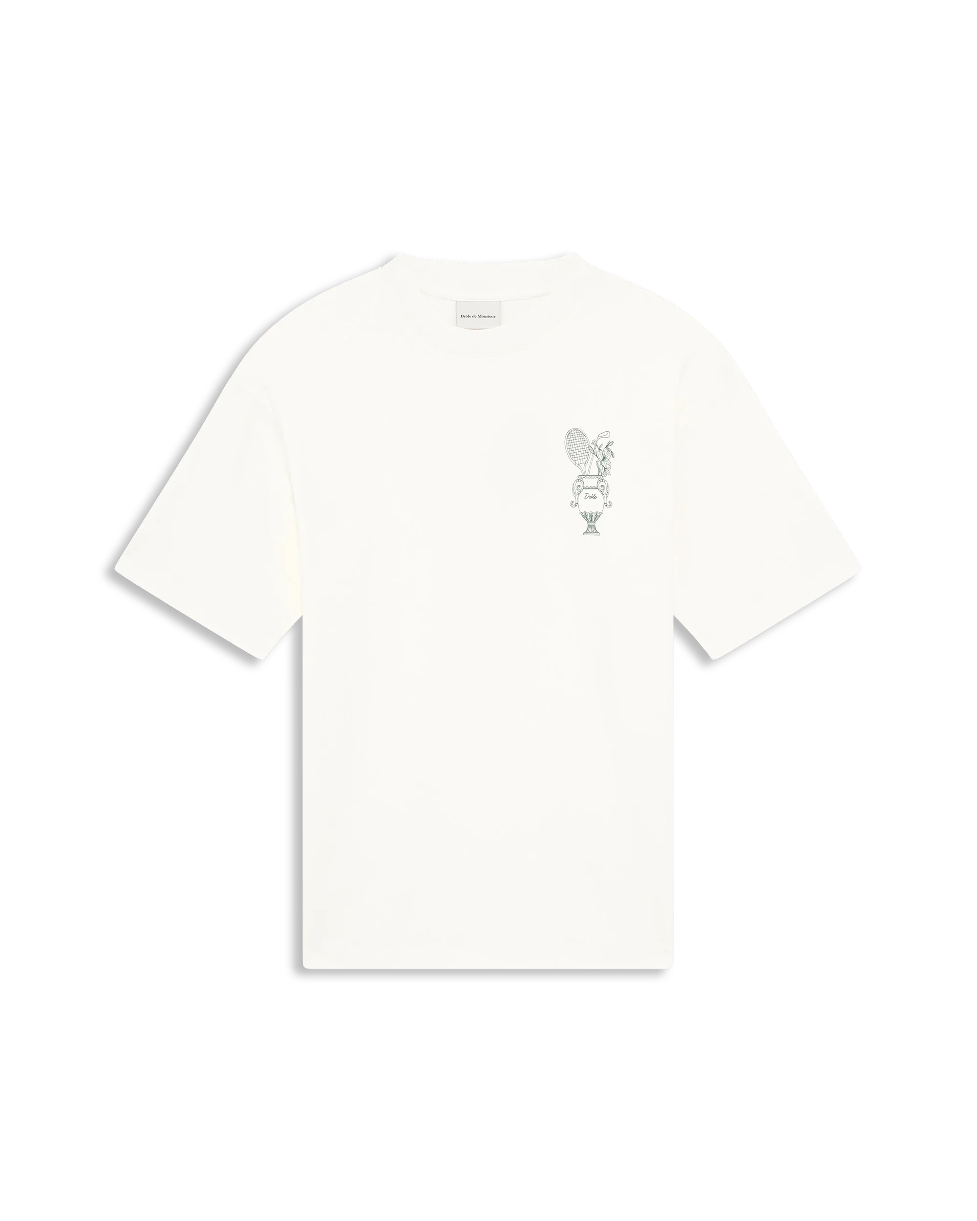Ce T-shirt blanc cassé en 100% coton interlock, avec une encolure en bord-côte, arbore le motif Medicis Sport à l’avant et au dos.