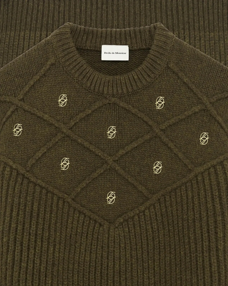 HomeShopCréateursDRÔLE DE MONSIEURDrôle de Monsieur – Pull La Maille Monogramme kaki
