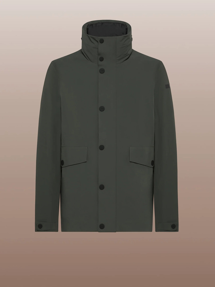 Ce vêtement d’extérieur d’hiver chaud, léger et imperméable transpose l’esthétique de la veste militaire pendant la saison froide avec style et performance. La membrane extensible et respirante Stratofabric#3 présente une coque extérieure ultra légère et fine, avec une sensation unique. Les boutons noirs doux au toucher sont le point fort du style qui contrebalance l’aspect super mat du rabat avant, dissimulant la fermeture zippée à double curseur. Equipé de poches latérales supplémentaires avec fermetures éclair thermosoudées noires. Le col vertical protège le cou et cache une capuche escamotable. Le rembourrage en duvet de canard 90/10 est entouré de la technologie Floating Shield dans des carrés thermosoudés doux et sans couture pour un ajustement et un confort impeccables. Le logo noir micro-injecté sur la manche gauche signe un classique instantané original.